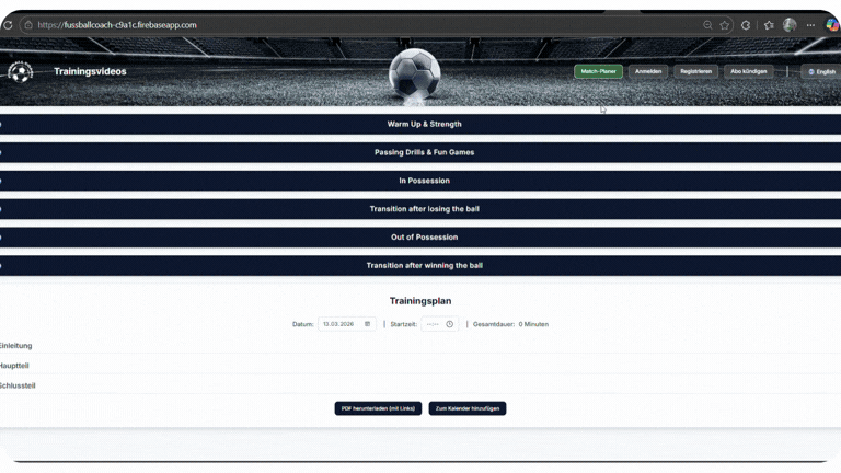 Neben den Trainingsvideos gibt es ab sofort ein zweites Modul auf der Plattform: den Match-Planer.