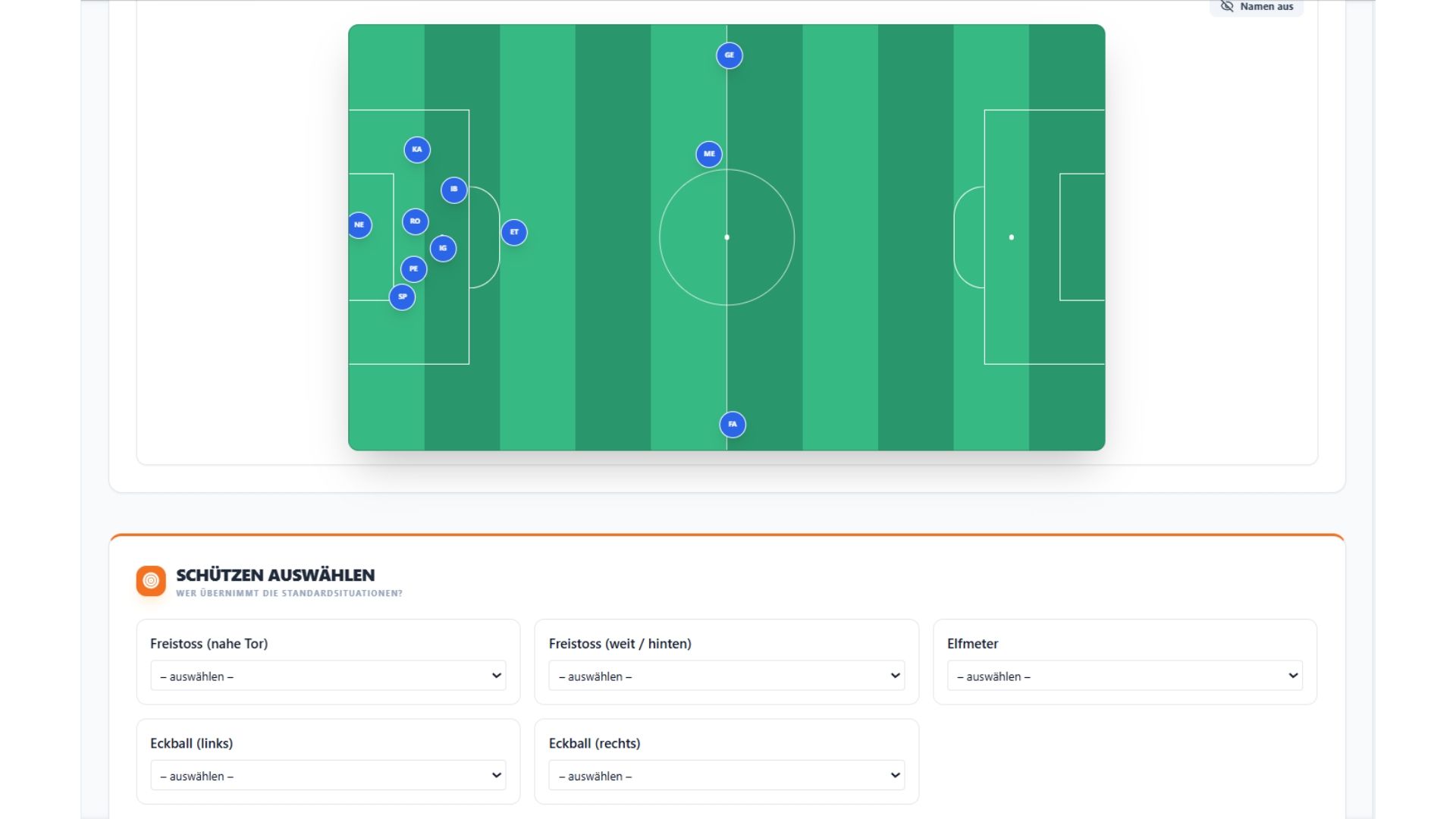 Spieler lassen sich dabei frei verschieben, um taktische Anpassungen schnell zu visualisieren.