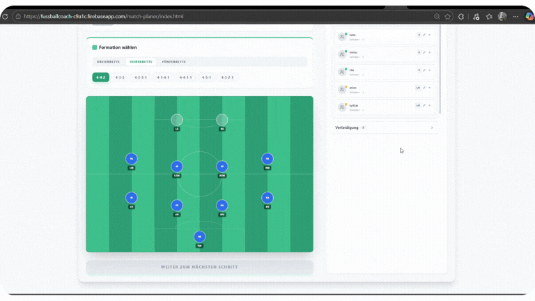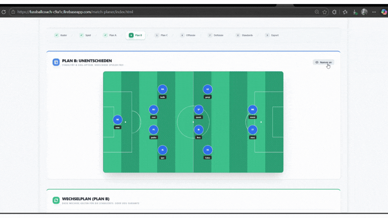 Die Idee dahinter ist einfach: Als Trainer verbringt man oft viel Zeit damit, Spiele vorzubereiten – Aufstellung überlegen, Wechsel planen, Standards festlegen oder das Aufgebot verschicken. Genau dafür habe ich dieses Tool entwickelt.