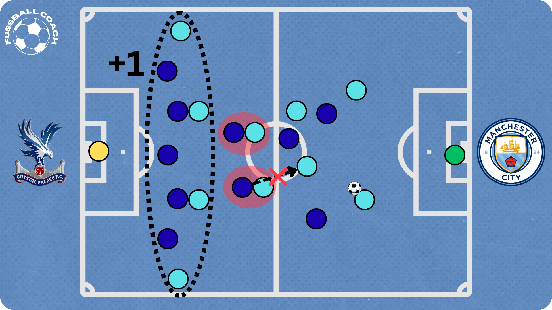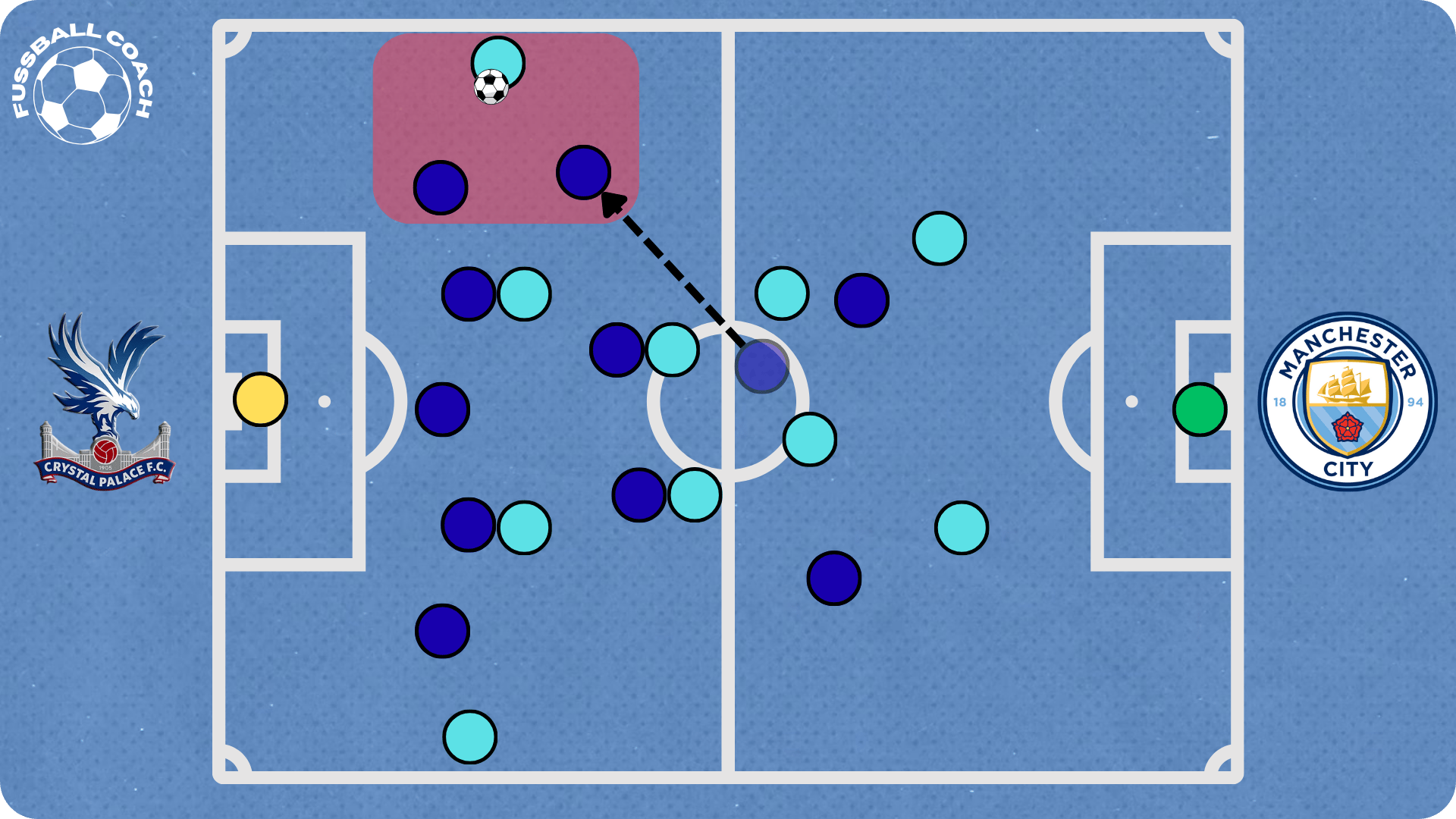 The FA Cup final against Manchester City offered a fascinating insight into Glasner’s tactical thinking. City’s plan was to lure Palace into pressing. Once Palace’s holding midfielders stepped out to press a center back, space would open up behind them for City’s highly technical players in the half-spaces.