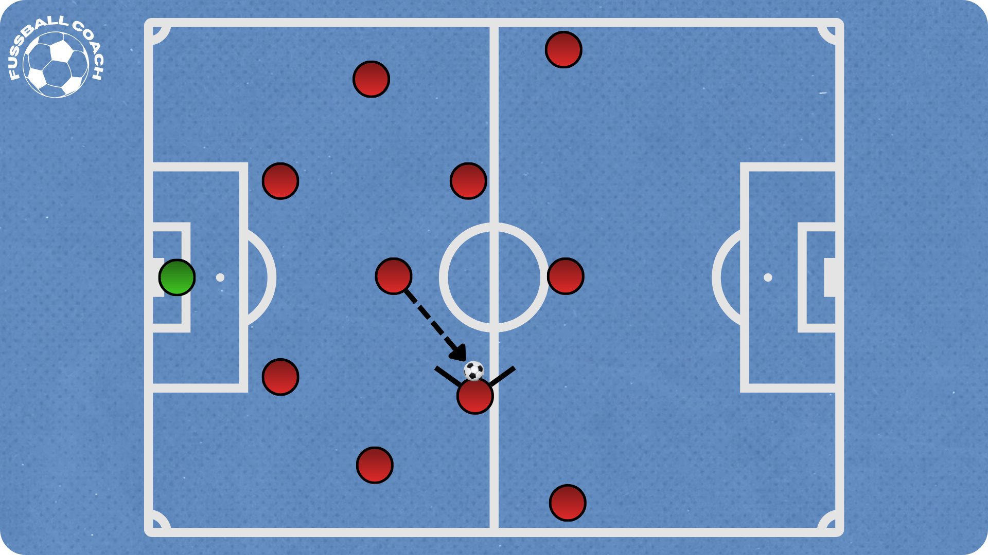 By contrast, vertical passes are usually received with the back to goal. This makes it easier for the opponent to press, because the receiver first has to turn before progressing the play.